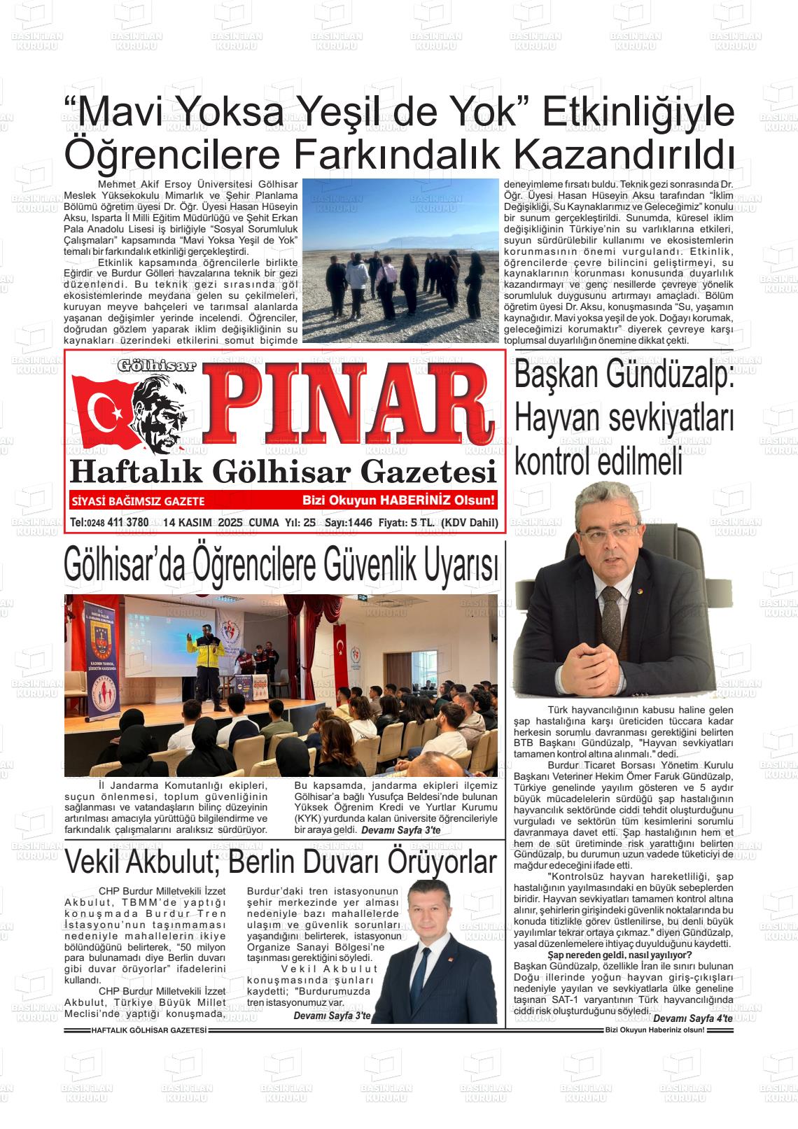 Burdur Yerel Gazeteleri 14 Kasım 2025, Cuma Günü Manşeti