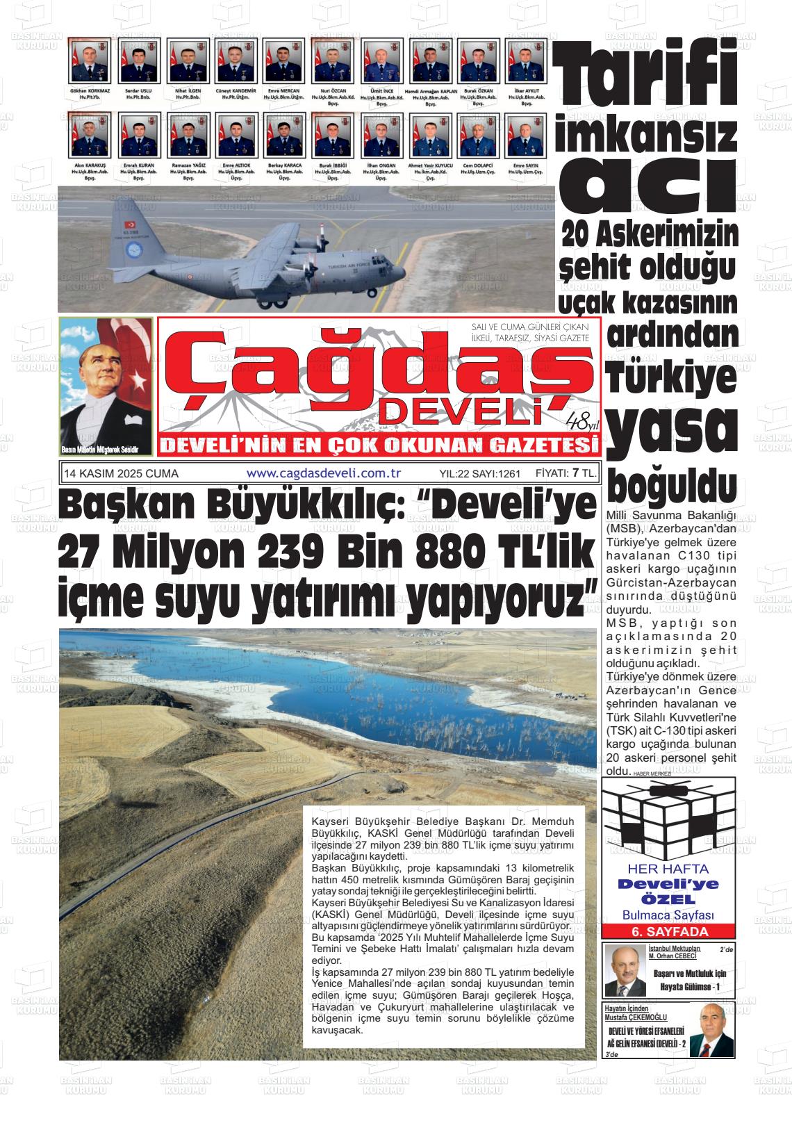 Kayserİ Yerel Gazeteleri 14 Kasım 2025, Cuma Günü Manşeti